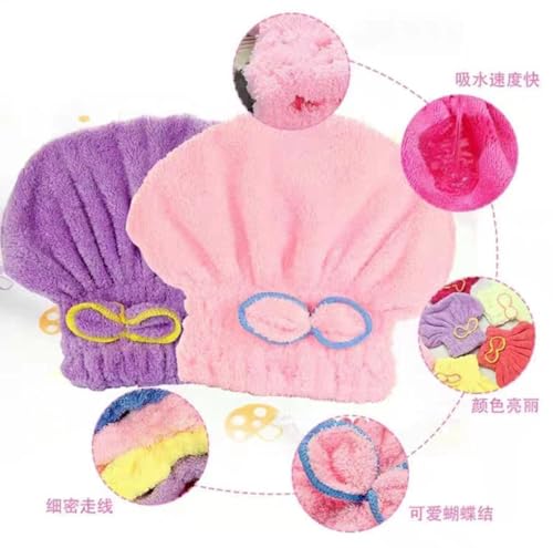 Generic - منشفة تجفيف الشعر من المايكروفايبر مع فيونكة، قبعة تربون سريعة الجفاف، متعددة الالوان