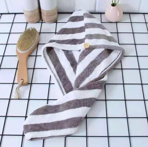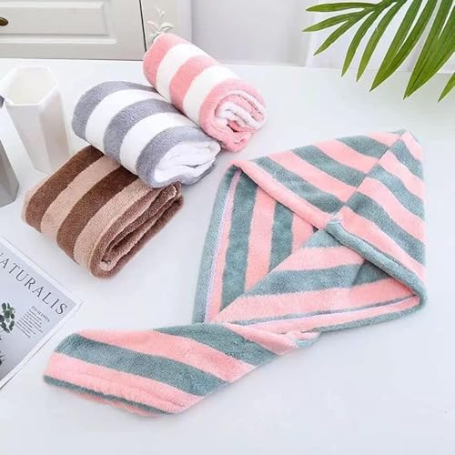 - ١) مجموعة متكاملة: تتضمن ٣ مناشف شعر مخططة بألوان عصرية - وردي، رمادي، وبني، مناسبة للاستخدام اليومي