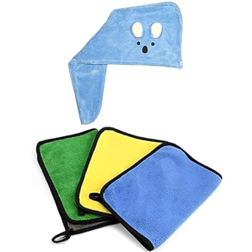 Other - منشفة شعر مايكروفايبر، تربون للشعر المبلل والمجعد، منشفة تجفيف الشعر (اللون: لون عشوائي) + 4 قطع من مناشف المايكروفايبر مقاس 30 سم × 40 سم، من اذر
