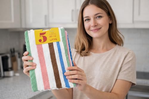 - مجموعة كاملة: مجموعة من 5 قطع من مناشف المطبخ المصنوعة من الألياف الدقيقة عالية الجودة بألوان مختلفة