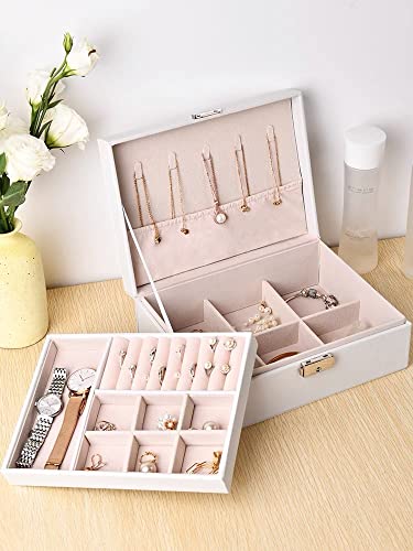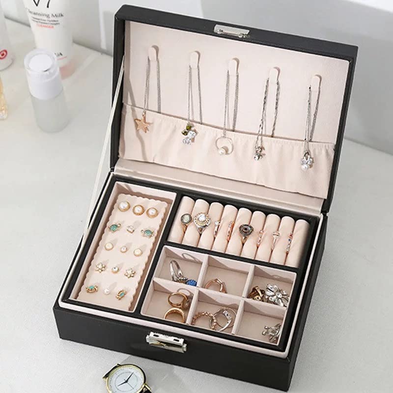 Generic - صندوق تخزين مجوهرات، من الجلد والمايكروفايبر، بغطاء قابل للفك، وسعة كبيرة وهو مقاوم للغبار