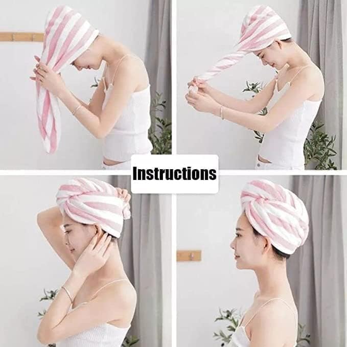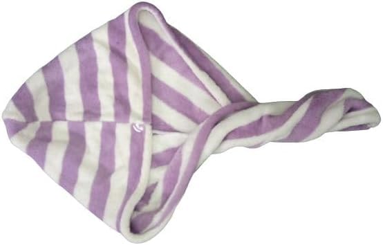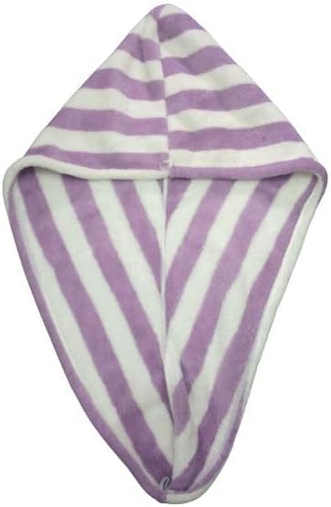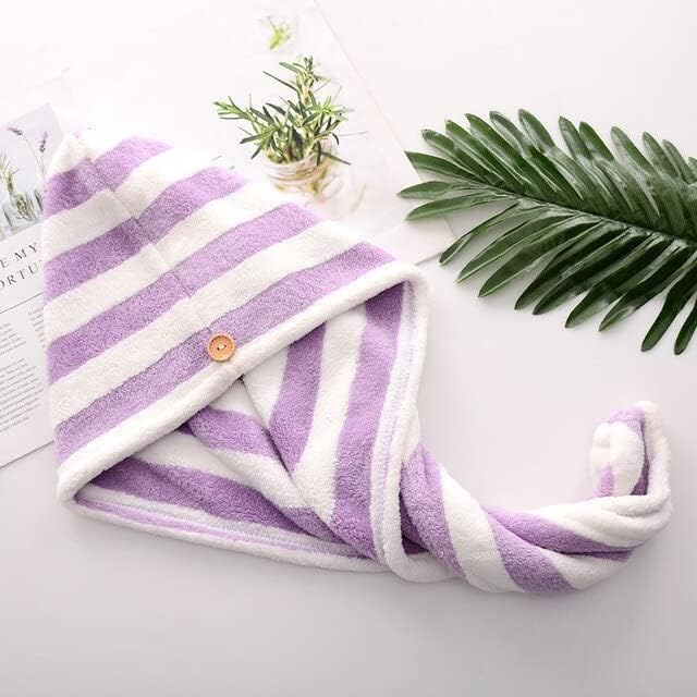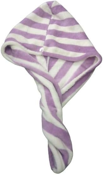 Generic - فوطة تجفيف شعر مايكروفايبر طويلة بتصميم خطوط مع زر على شكل دب مصنوعة من خامة عالية الجودة - لون ارجواني وابيض