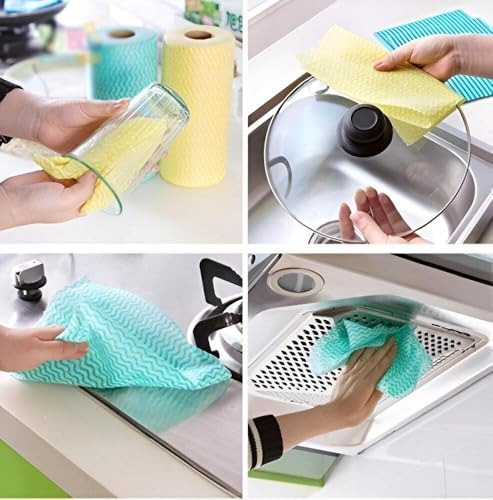 Generic - مناشف ورقية من الألياف الدقيقة للاستخدامات المتعددة - عبوة من 50 منشفة تنظيف جافة ورطبة قابلة لإعادة الاستخدام وقابلة للغسل، عبوة فردية الوان متعدده (2 عبوه)