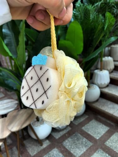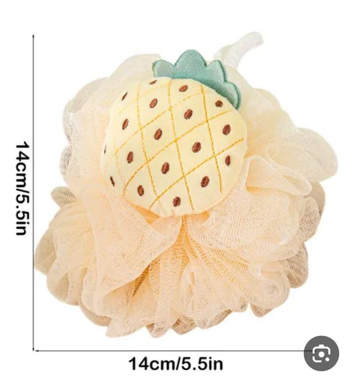 - التصميم: ليفة استحمام رائعة على شكل أناناس تتميز بجزء خارجي شبكي أصفر ناعم مع لمسة علوية مزخرفة، مما يضيف لمسة استوائية مرحة إلى حمامك