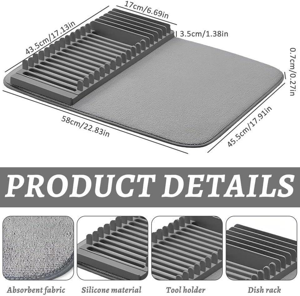 Generic - بساط تجفيف اطباق مبطن من المايكروفايبر + حامل ملاعق - منظم مطبخ احترافي واعلى جودة
