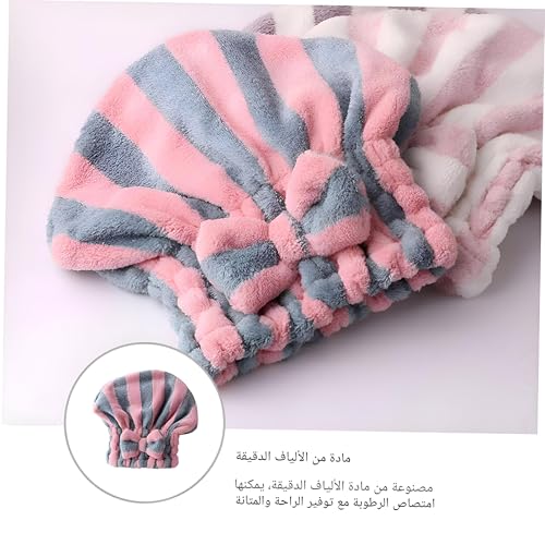 - النمط المخطط والتصميم اللطيف مع الفيونكة يجعل هذه القبعة ليست عملية فحسب، بل جذابة بصريًا أيضًا، لإضافة لمسة ساحرة أنيقة إلى روتين الاستحمام أو العناية بالشعر اليومي.