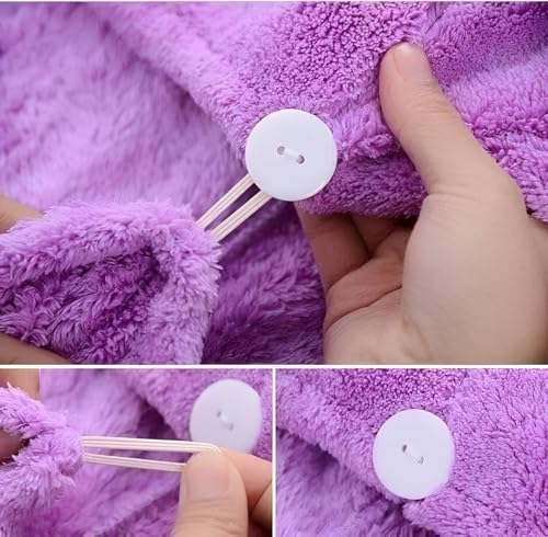- بعد الاستحمام، قومي بلف شعرك بهذه المنشفة ذات القلنسوة واربطي الفتحات عند الأزرار لإبقائها في مكانها بشكل آمن؛ اعتمادًا على شكل رأسك، يسمح الشكل بطريقتين للارتداء، إما مع الواجهة الأمامية للأمام أو الخلف، لملاءمة مريحة وآمنة.