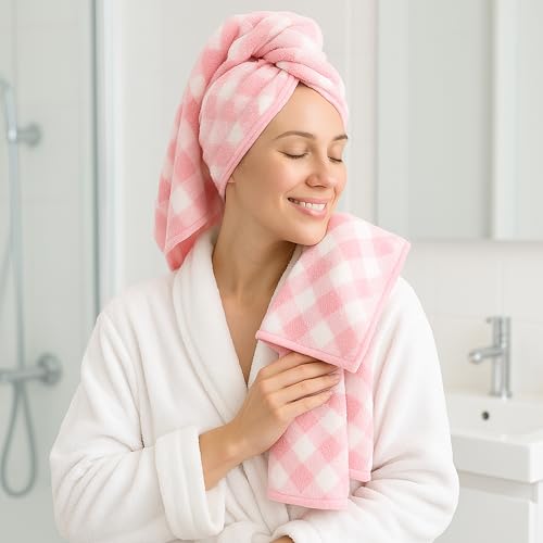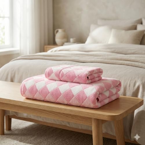 Generic - طقم بشكير + فوطة مايكروفايبر – امتصاص عالي وسريعة الجفاف – مضادة للوبر – للحمام والسبا والسفر – قابلة للغسل وإعادة الاستخدام (بينك)