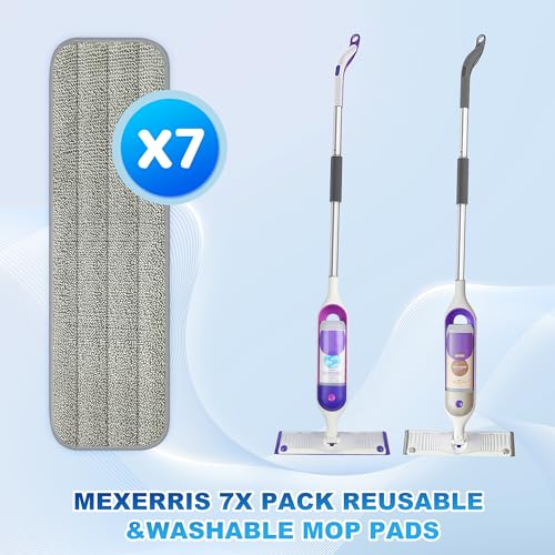 MEXERRIS - طقم رأس شرشوبة من المايكروفايبر لاعادة التعبئة من 7 قطع من ميكسيريس - رؤوس بديلة للشرشوبة المزودة ببخاخ لتنظيف الارضيات تناسب جميع انواع الشرشوبة ببخاخ والشرشوبة بتصميم فيلكرو، رمادي