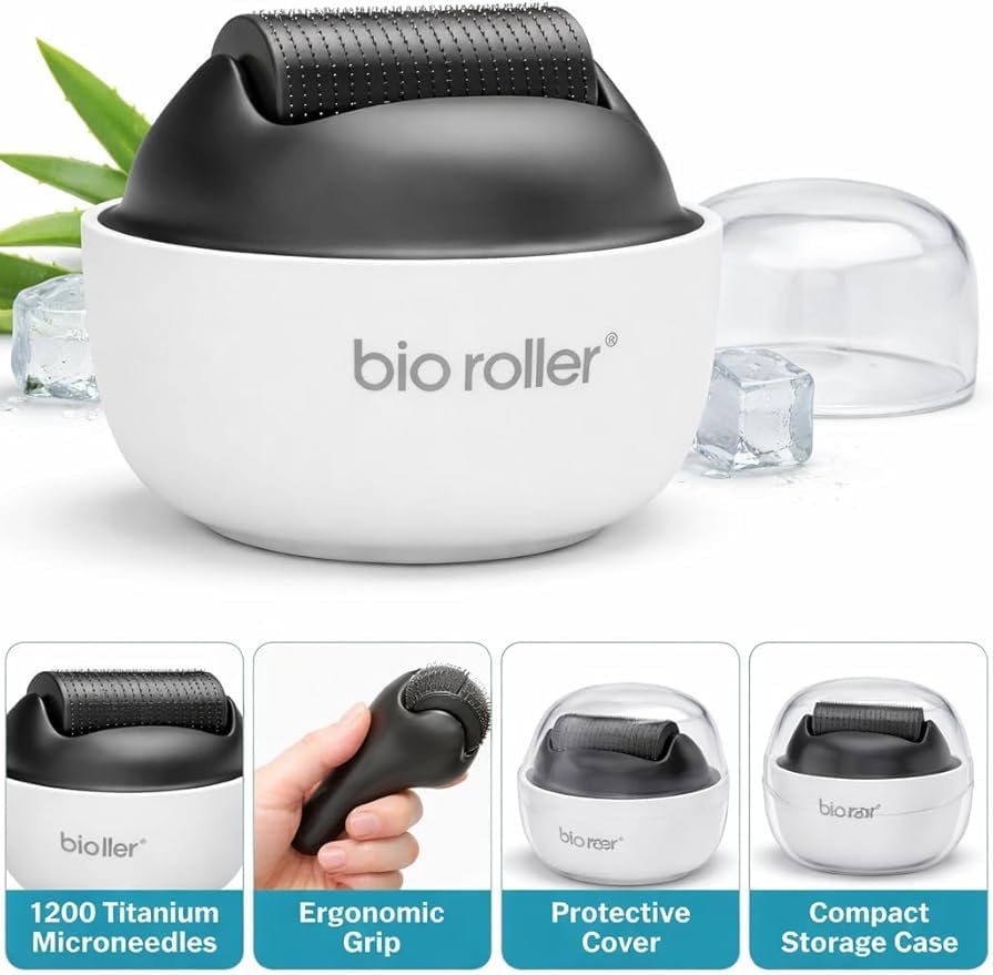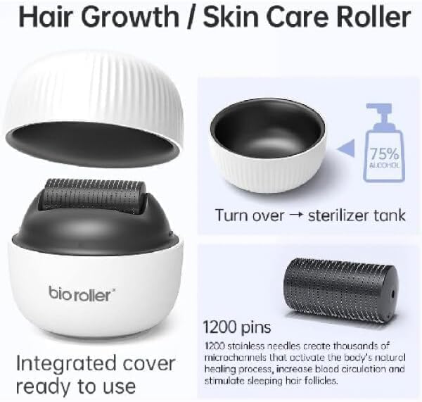 - ديرما رولر مع 1200 دبوس تيتانيوم - مصممة للاستخدام اللطيف بالإبر الدقيقة في المنزل، مما يساعد على تحسين مظهر ملمس البشرة ودعم امتصاص أفضل لمنتجات العناية اليومية بالبشرة.