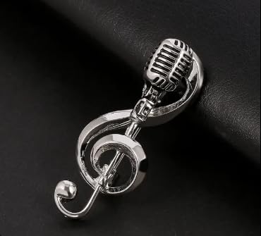 Generic - بروش ميكروفون ومفتاح صول فضي، إكسسوار أنيق لإطلالة موسيقية.