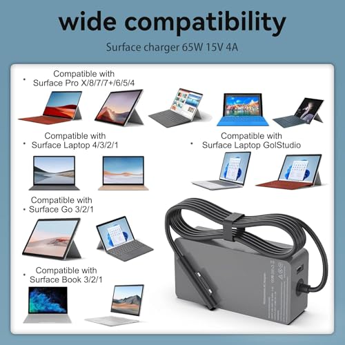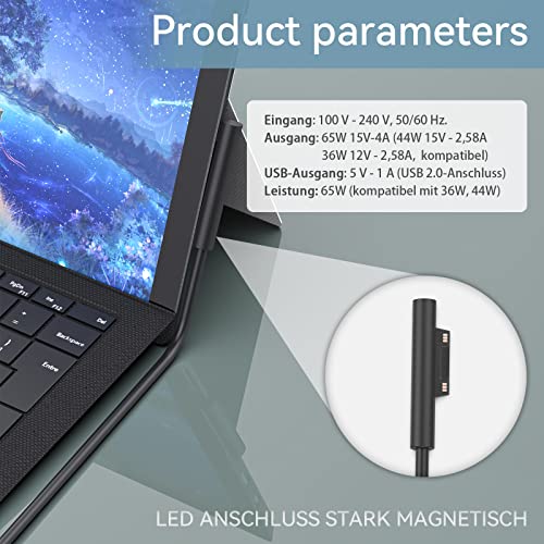 - شاحن 65 واط لجهاز سيرفس يشحن جهاز سيرفس الخاص بك بسرعة ويسمح لك منفذ USB 3.0 الإضافي بشحن الأجهزة الأخرى في نفس الوقت. القابس المغناطيسي حساس للغاية ويتم توصيله تلقائيًا بجوار منفذ الشحن، حجم صغير وسهل الحمل