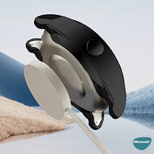 MICROSONIC - جراب مصنوع من السيليكون الناعم دائري بالكامل 360 لساعة هواوي بودز مايكروسونيك [جراب متوافقة مع سماعات واتش - أسود] بولي يوريثين