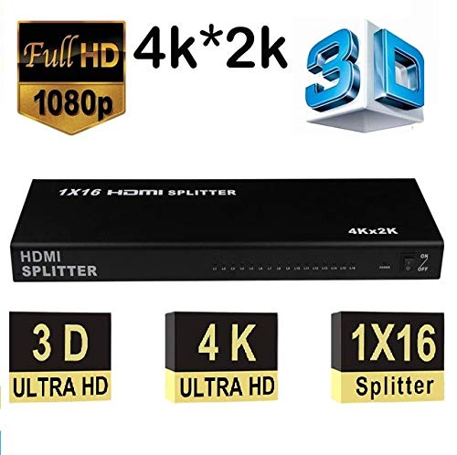 Microware - موزع HDMI 1×16 منفذ يدعم دقة 4K/2K/ثلاثي الابعاد/1080 بيكسل/FHD مع شاحن لتلفزيون HD/مشغل بلو راي/سكاي HD/بلاي ستيشن 3و4/اس تي بي من ميكرو وير