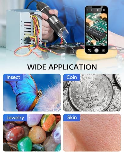 - متعدد الوظائف لمجهر USB الرقمي: المجهر الرقمي USB مثالي لفحص البشرة/الشعر/المنسوجات/المجوهرات/المجموعات/الفحص الصناعي/الطباعة والأغراض التعليمية أو غيرها من الفحوصات البيولوجية، وهو مفيد ومضحك للأطفال والطلاب والمهندسين والمخترعين وغيرهم.