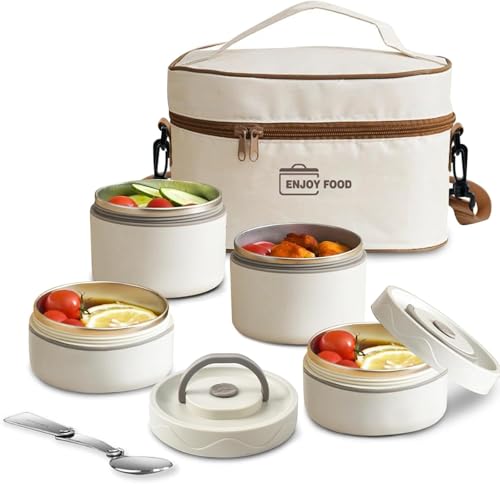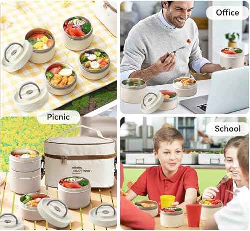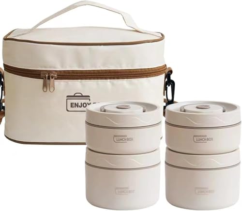 TDOO - صندوق غداء حراري قابل للاستخدام في الميكروويف، حاويات غداء معزولة محمولة مع حقيبة، حاوية طعام من الستانلس ستيل قابلة للتكديس مانعة للتسرب للبالغين والاطفال، مجموعة من 4 صناديق بينتو معزولة