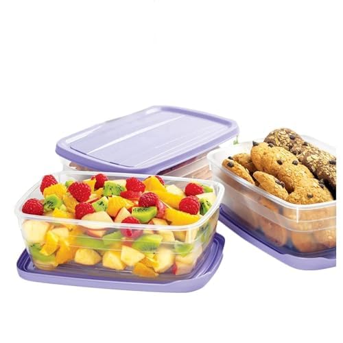 Generic - علب تحضير الوجبات في الميكروويف، [3 عبوات] حاويات بلاستيكية لتخزين الطعام مع اغطية، صندوق بينتو للاستعمال مرة واحدة، امن للاستخدام في الثلاجة والميكروويف وغسالة الصحون (1.2 لتر، مستطيل، ارجواني، 3 قطع