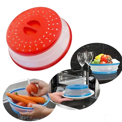 Generic - غطاء للميكروويف بفتحات تهوية، غطاء طبق للمطبخ، سهل الاهتزاز باليدين، يمكن تحويله لسلة تصفيف، مصنوع من سيليكون وبلاستيك بدون بيسفينول، ويتوفر بعدة ألوان