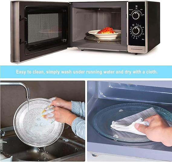 - سهلة التنظيف: القرص الدوار للميكروويف سهل التنظيف. يمكنك ببساطة شطف الطبق تحت الماء الجاري ثم مسحه ليجف بقطعة قماش. قابل للغسل في غسالة الأطباق