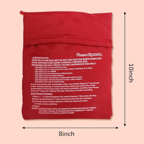 - بطاطس سريعة ورقيقة في دقائق - استمتع بالبطاطس المطهية على البخار أو المخبوزة بشكل مثالي في أقل من 5 دقائق. يحتفظ كيس البطاطس السريع في الميكروويف بالرطوبة والبخار، ويطبخ كل بطاطس بالتساوي من الداخل والخارج للحصول على نتائج ناعمة ولذيذة في كل مرة. رائعة للعشاء السريع أو الجوانب أو الوجبات الخفيفة الصحية.