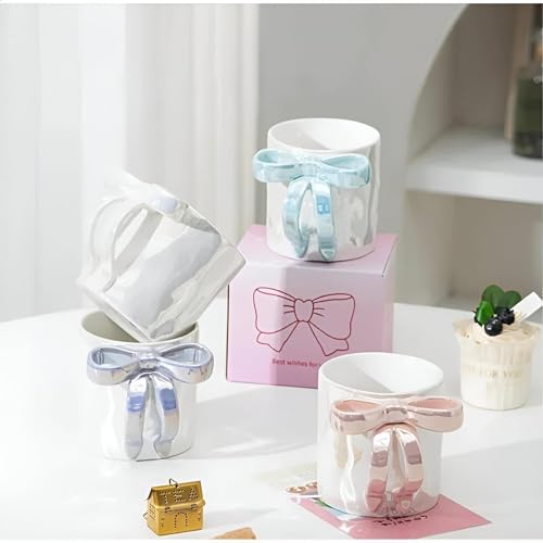 Generic - كوب امن للاستخدام في الميكروويف - كوب سيراميك متين سعة 12 اونصة مع مقبض فيونكة لطيف ولمسة نهائية مخططة حديثة، رائع للقهوة والشاي او الشوكولاتة الساخنة، هدية رائعة لأي مناسبة