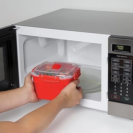 Generic - مكواة بخار للميكروويف مع سلة بخار قابلة للازالة | 1.4 لتر طعام مربع صغير | احمر/شفاف ستيما