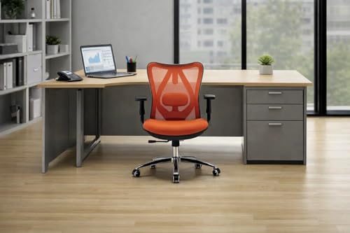 - لون برتقالي نابض بالحياة: يضيف التنجيد البرتقالي اللافت للنظر والمزيج الشبكي لمسة عصرية وحيوية إلى أي مكتب مع الحفاظ على المظهر الاحترافي