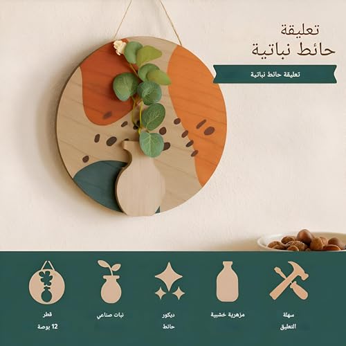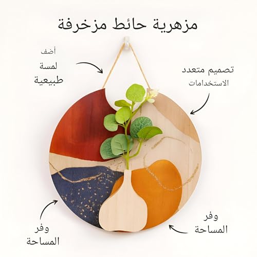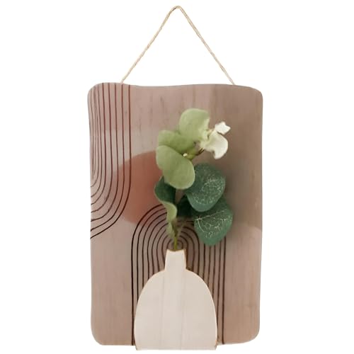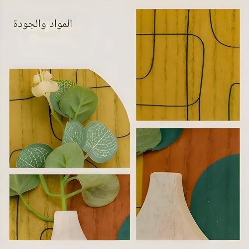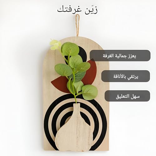 Generic - توازن منتصف القرن - لوحة فنية جدارية خشبية معلقة باشكال هندسية تجريدية وزخرفة نباتات صناعية صغيرة، لمسة بوهو مثالية للديكور الداخلي العصري الانيق (موديل 13)