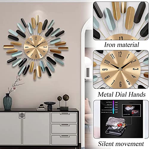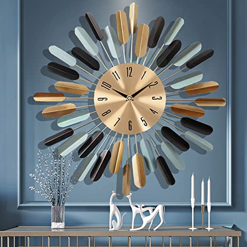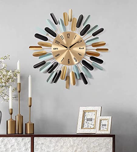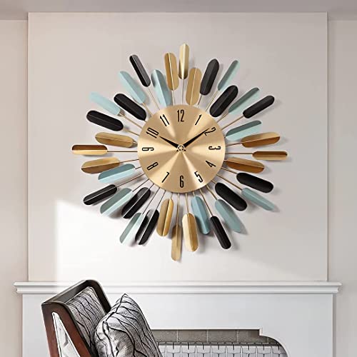 hwanh - ساعة حائط كبيرة بتصميم منتصف القرن من المعدن مزخرفة مقاس 61 سم بتصميم شروق الشمس، حركة صامتة وتصميم عصري لغرفة المعيشة وغرفة النوم وغرفة الطعام، رقمي، متعدد الالوان، من هوانا