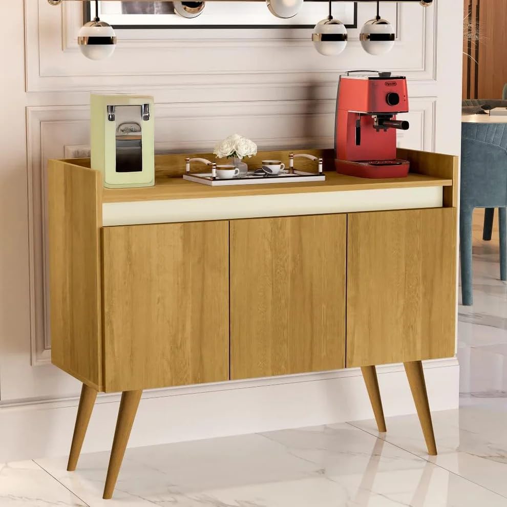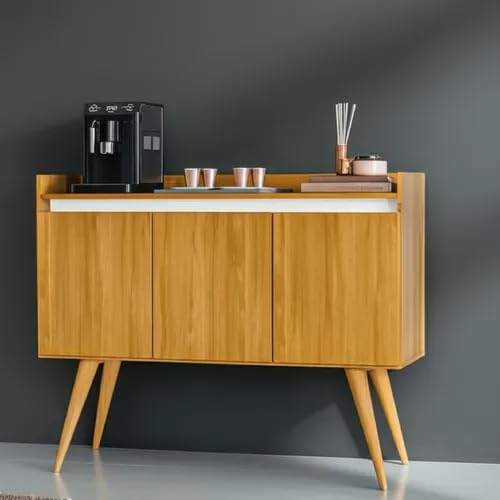 Generic - خزانة قهوة عصرية من ميد سينشري، وحدة تخزين خشبية ليفية مثبتة على الحائط، خزانة جانبية كلاسيكية مع ارجل مائلة، محطة بار منزلية
