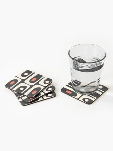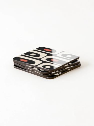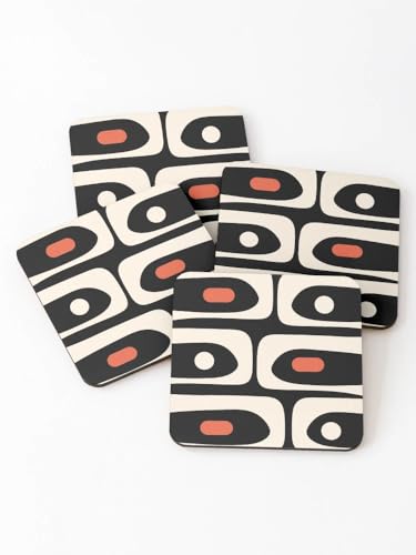 Generic - قواعد اكواب عصرية بنمط تجريدي من منتصف القرن بلون اسود وبرتقالي وكريمي اللوز (مجموعة من 4 قطع)