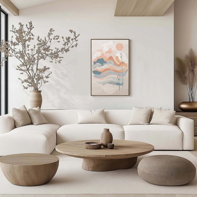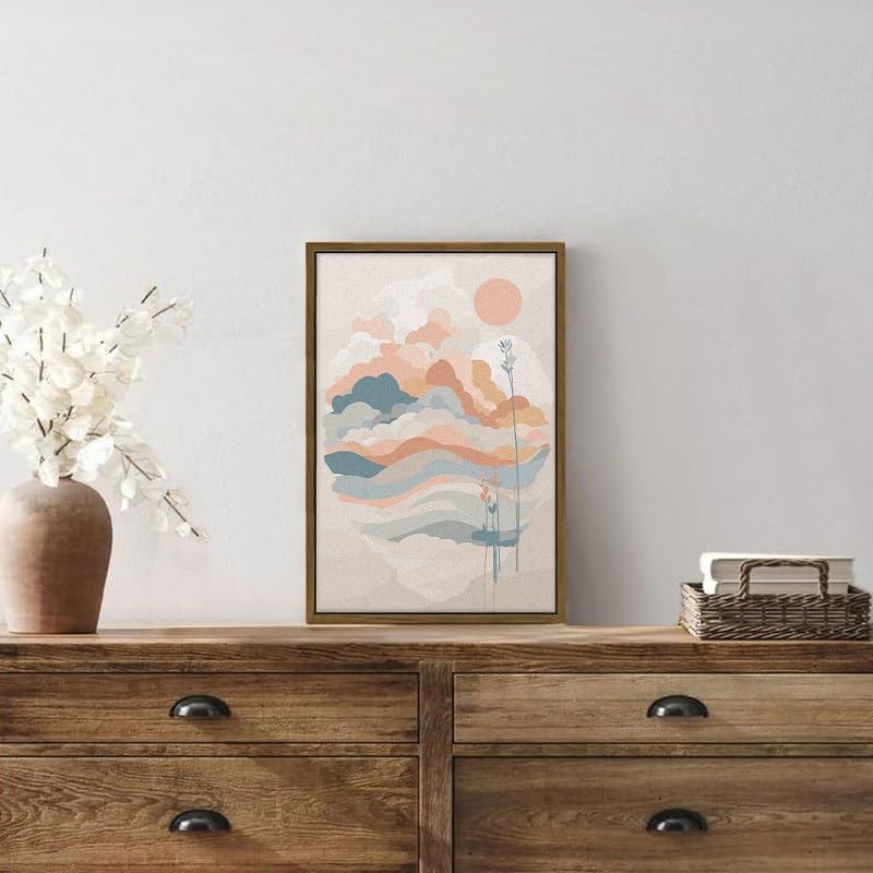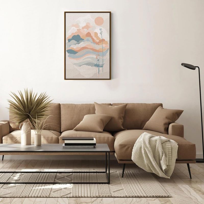 Home Gallery - لوحة فنية جدارية بإطار وبطبعة شروق الشمس، تصميم عصري مستوحى من منتصف القرن، 90×60 سم