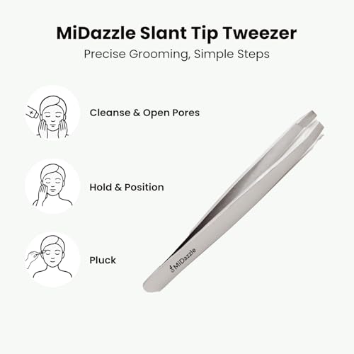 Omidazzle - ملقط بطرف مائل للحواجب والشفاه العلوية وازالة الرؤوس السوداء وشعر الوجه للنساء والرجال من ميدازل