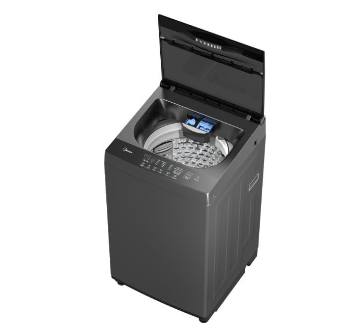 Midea - ميديا تحميل علوي MA102W90P/GK، برنامج تنظيف الاحذية، غسيل بطانية، اي كلين، سهل الجرعات، 9 كجم، رمادي تيتانيوم