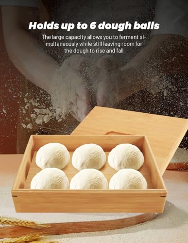MidingChai - صندوق كرات بيتزا من ميدينغ تشاي، صندوق تخمير للعجين، صندوق بيتزا من الخيزران، حاوية طعام لصينية العجين، صندوق عجين لـ 6 كرات بيتزا، صندوق كرات بيتزا مع غطاء 40 × 30 سم، صندوق بيتزا مع غطاء