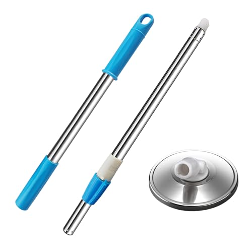 Midremer - مقبض ممسحة دوارة قابل للتمدد بديل مطور يدور بزاوية 360 درجة مع قرص مقوى لنظام تنظيف دلو الممسحة الدوارة طول 1.25 م (قرص من الفولاذ المقاوم للصدأ، أزرق) من ميدريمر