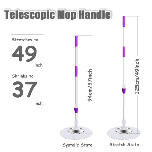 - ✔المقاس المناسب: يبلغ مقاس عمود الممسحة الدوار الخاص بنا 1.25 م عند تمديده بالكامل و94 سم عند عدم تمديده بالكامل. يمكنه تلبية احتياجات معظم الأشخاص، وتنظيف الأرض بسهولة والاستمتاع بمنزل خالٍ من الغبار.