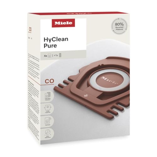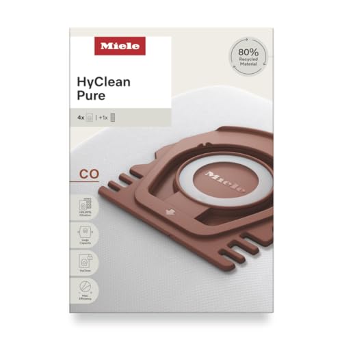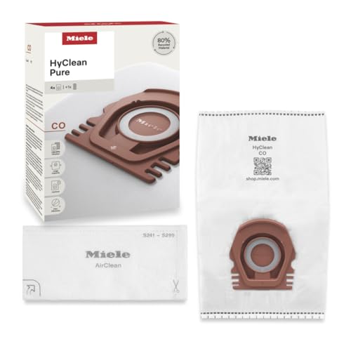 Miele - ميلي اكياس غبار للمكنسة الكهربائية بيور كو من هاي كلين لجميع موديلات ميلي Guard M1، عبوة من 4 اكياس غبار وفلتر عادم اير كلين