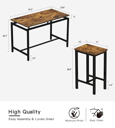 - 🍭 【استقرار مضمون】يجمع طقم طاولة الطعام بين سطح عالي الجودة من الخشب الليفي متوسط الكثافة وإطار معدني متين، مما يضيف المزيد من المتانة والعمر الطويل. تتحمل الطاولة وزنًا أقصى يبلغ 90.7 كجم، ويتحمل كل كرسي بار وزنًا أقصى يبلغ 113.4 كجم.
