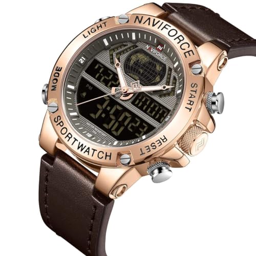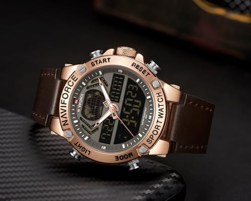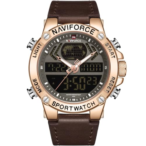 Generic - ساعات رياضية كوارتز للرجال من ميفايتر، شاشة رقمية، مقاومة للماء، فاخرة NF9164 RG/B/D، بمينا أسود، بسوار بني داكن
