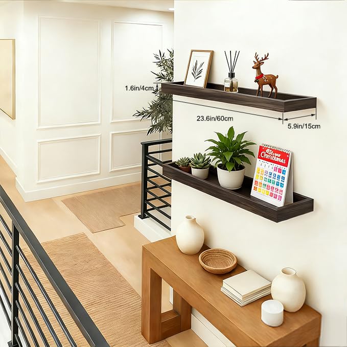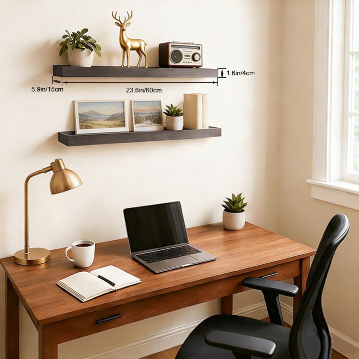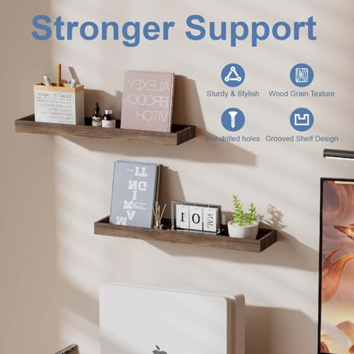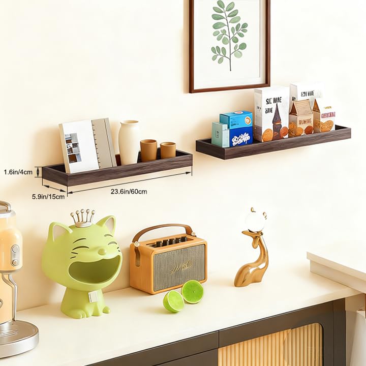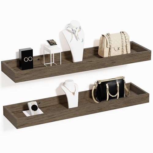 Mifurn - أرفف خشبية عائمة للتعليق على الحائط لديكور المنزل للحمام وغرفة النوم وغرفة المعيشة والمطبخ وفوق المرحاض للتخزين والعرض من ميفورن (خشب البلوط الغامق، مجموعة من قطعتين، 61 سم)