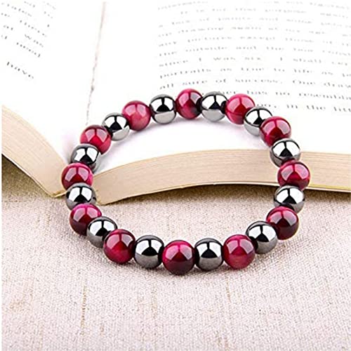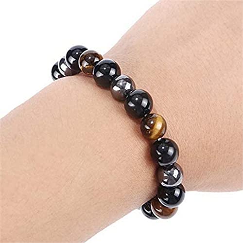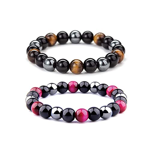MIFYNN - سوار علاجي مغناطيسي من الهيماتايت 8 ملم ثلاثي الحماية لتخفيف التوتر خرز هيماتايت + زجاج بركاني اسود + حجر عين النمر زوجين للرجال والنساء احجار