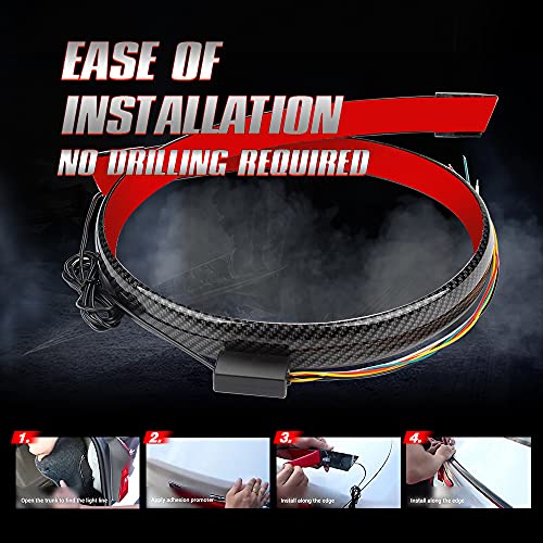 MIHAZ - اضواء ليد لفرامل التوقف الثالثة بسطوع شامال عالي/منخفض من ميهاز- طقم اضواء شريط السبويلر مقاس 51 بوصة للسيارة والشاحنة، ضوء خارجي من الياف الكربون بمقاس يناسب جميع انواع زجاج السيارة الخلفي