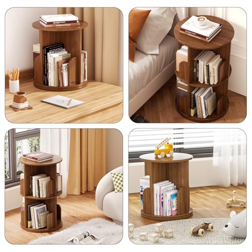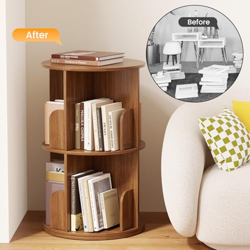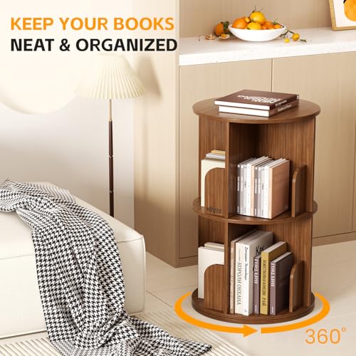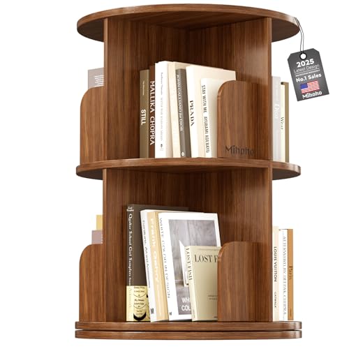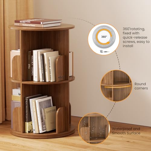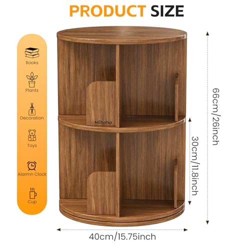 Mihoho - رف كتب دوار من ميهوهو، خزانة كتب دوارة من طبقتين، منظم كتب دوار للزاوية للدراسة والمكتب وغرفة النوم وغرفة المعيشة (طابقين)