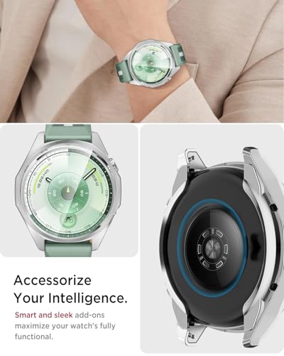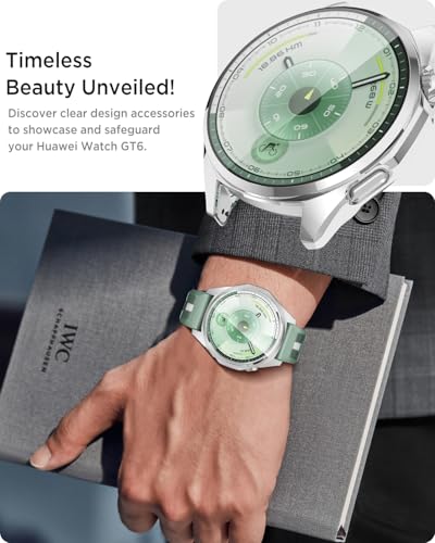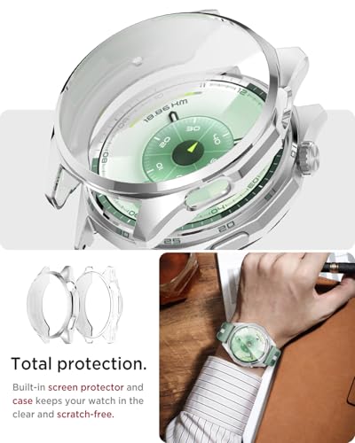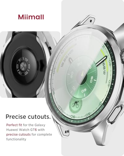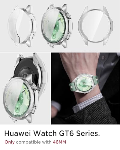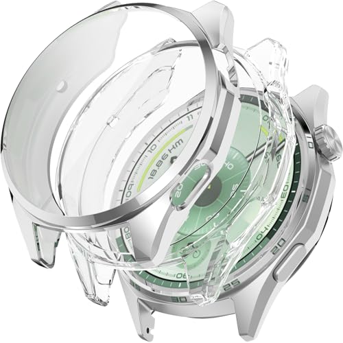 Miimall - جراب حماية لساعة هواوي GT 6، ممتص للصدمات من البولي يوريثين المقاوم للحرارة الناعم مع واقي شاشة، جراب حماية كامل شفاف مضاد للخدش والصدمات لساعة هواوي GT6 46 ملم من ميي مول، شفاف + فضي، قطعتان