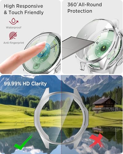 - [يتميز بفتحات دقيقة] تم تصميم جميع الثقوب لتتناسب مع الأزرار والمستشعرات المقابلة. سهل التركيب والفك، بدون الحاجة لإزالة السوار. تجعل الفتحة الخلفية الدقيقة للمصد الواقي ساعة هواوي GT6 الخاصة بك تشحن مباشرة مع وجود الجراب، ولا تحتاج إلى إزالته.