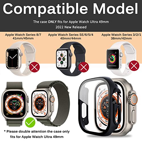 - [الحماية الكاملة] جراب ساعة ابل الترا 2 مقاس 49 ملم مصنوع من إطار بولي كربونات صلب وشاشة حماية من الزجاج المقوى، ويمكنه حماية شاشة ساعة ابل خاصتك والحواف والأطراف المنحنية من الخدوش والصدمات والسقطات العرضية وبدون إضافة أي حجم.
