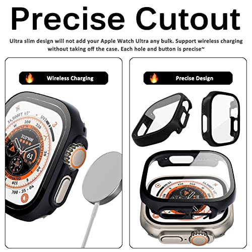 Miimall - جراب حماية من ميمول متوافق مع ساعة ابل الترا 2 / الترا 49 ملم، واقي شاشة من الزجاج المقسى فائق النحافة ومضاد للصدمات من البولي كربونات لساعة اي ووتش الترا 2 49 ملم - اسود