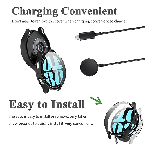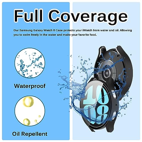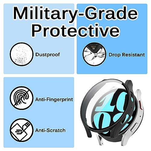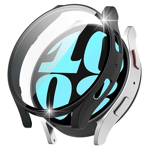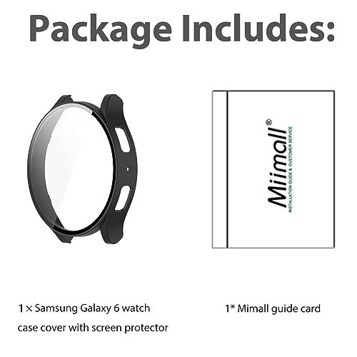Miimall - جراب حماية متوافق مع ساعة سامسونج جالاكسي 6 44 ملم من ميي مول، [رفيع للغاية وخفيف الوزن] [مضاد للصدمات والسقوط] جراب واقي للشاشة من الزجاج المقوى لساعة جالاكسي 6 44 ملم (أسود)