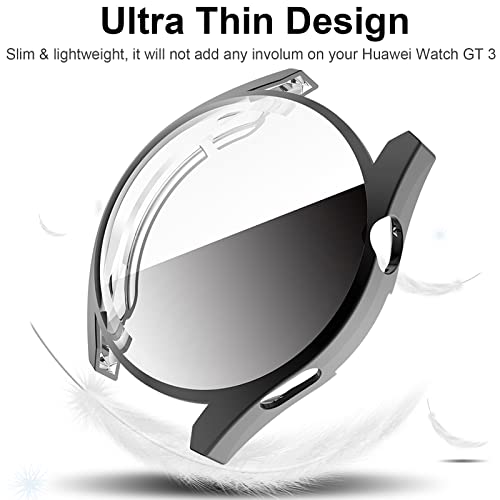 - [حماية كاملة] جراب ساعة هواوي GT3 مقاس 42 ملم/46 ملم مصنوع من إطار ناعم من البولي يوريثين الحراري وواقي شاشة، ويمكنه حماية شاشة ساعتك والحواف المنحنية من الخدوش والصدمات والسقوط العرضي وبدون إضافة أي حجم.